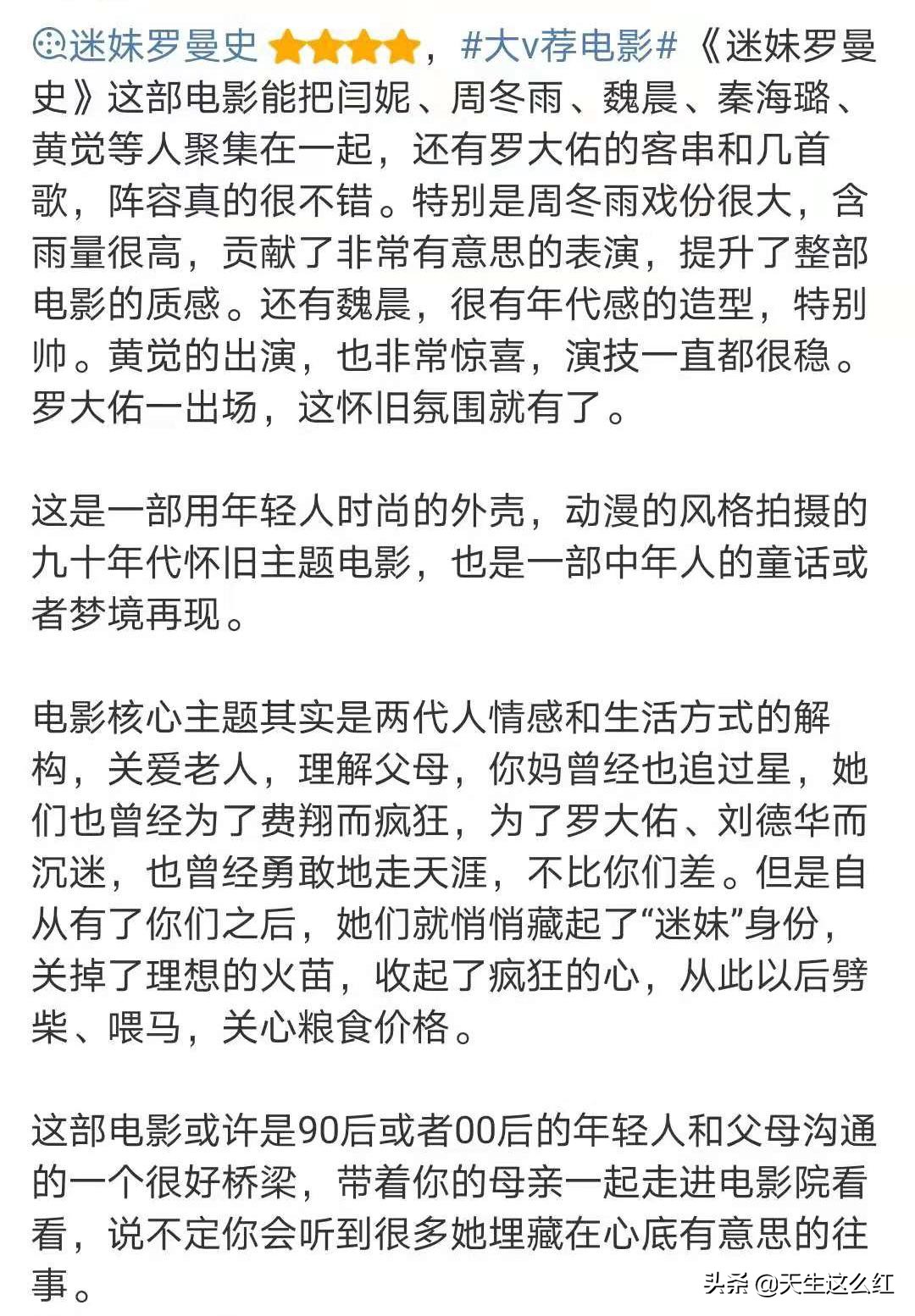 整体来说,《迷妹罗曼史》是一部充满爱意的温情电影,有笑点,也有泪点,很好地将亲情、友情、爱情串联在了一起。
