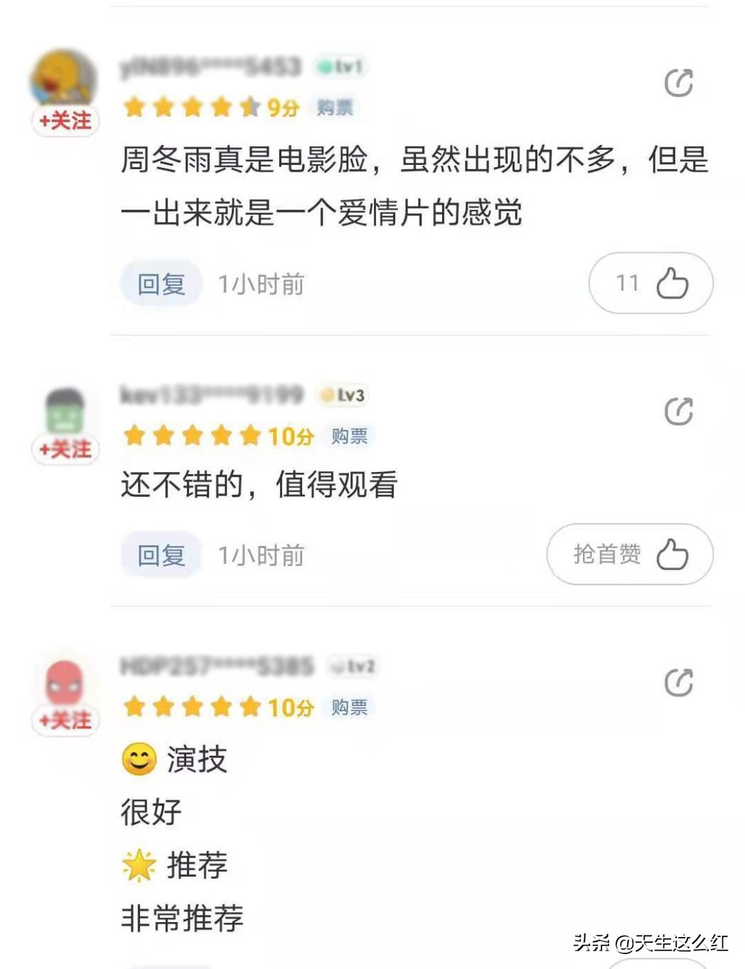 还有人说“周冬雨真的是电影脸,一出来就是爱情片的感觉。”