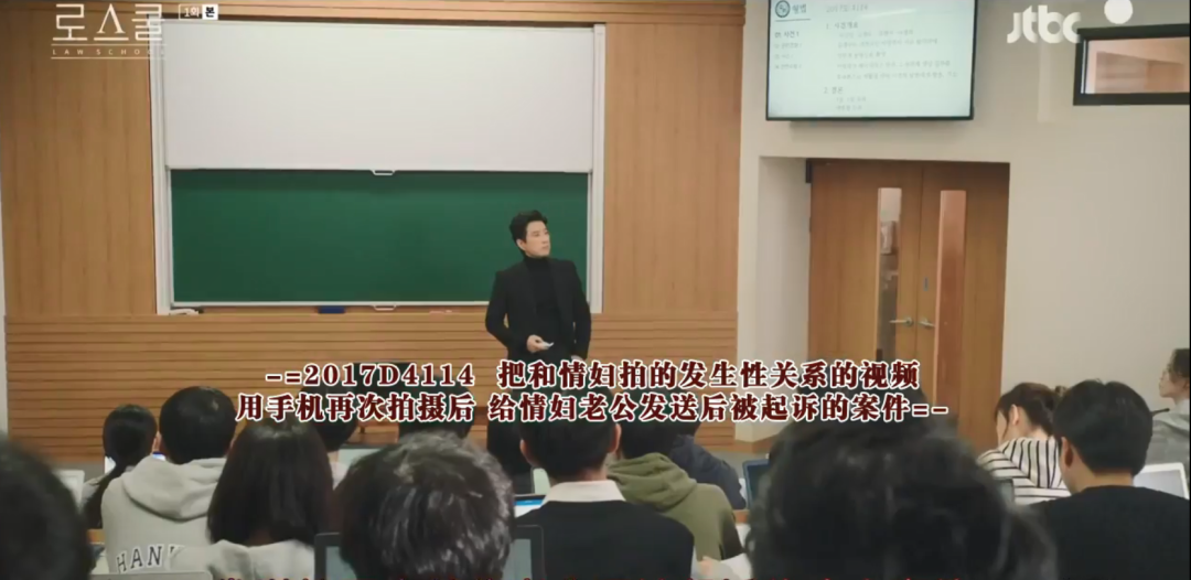 早在开篇的韩国大学法学院课堂。