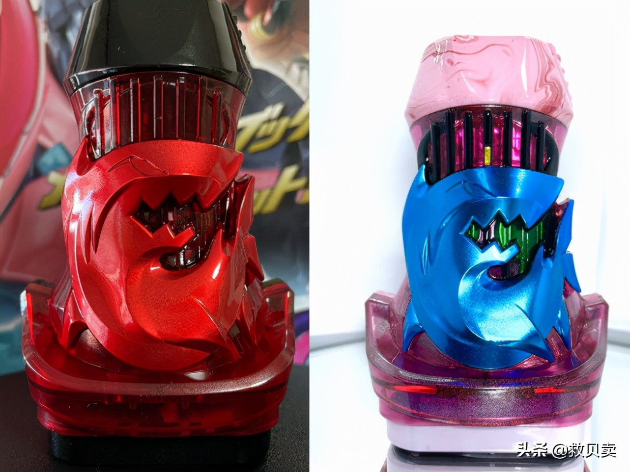 ?最后是与帝骑对应的“鲨鱼罪恶印章”,一共两个作品,粉色的涂装风格与上面作品的风格相同,主要凸显出动物图标背后的帝骑头像,比较符合老粉丝的审美,借助前辈骑士力量的味道更浓郁了。