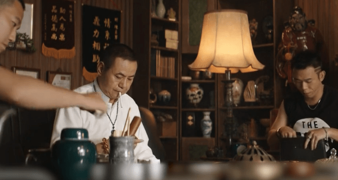 布袋戏大师李天禄扮演的林家之主林阿禄过来安慰乐师,这个镜头也给了蔡振南很长的时间。