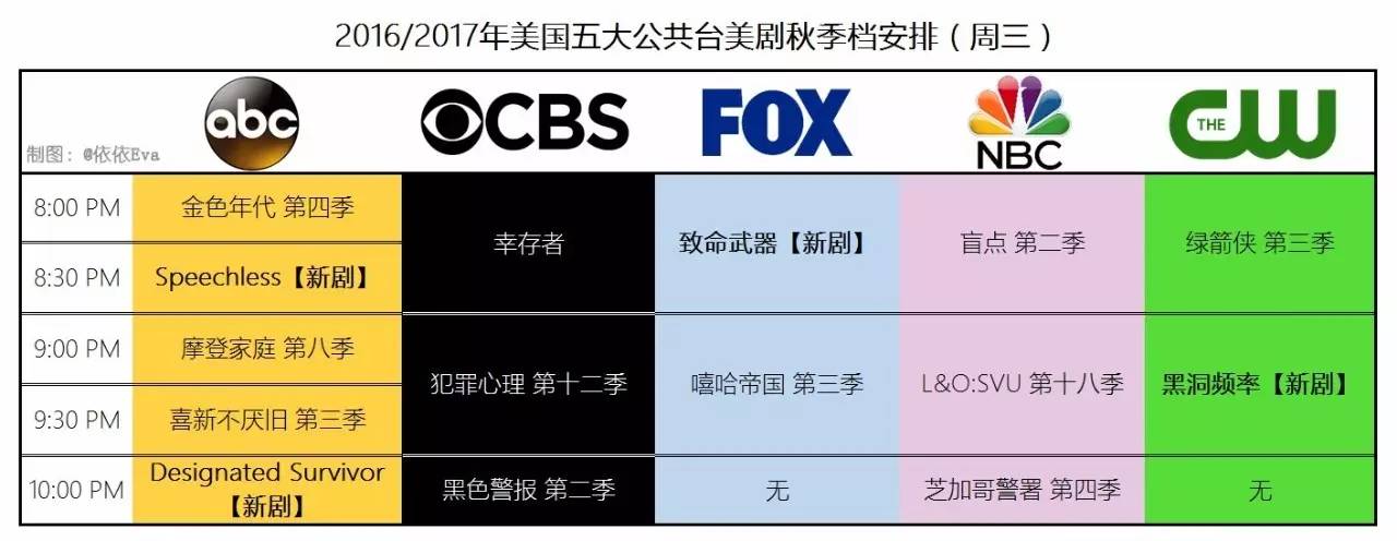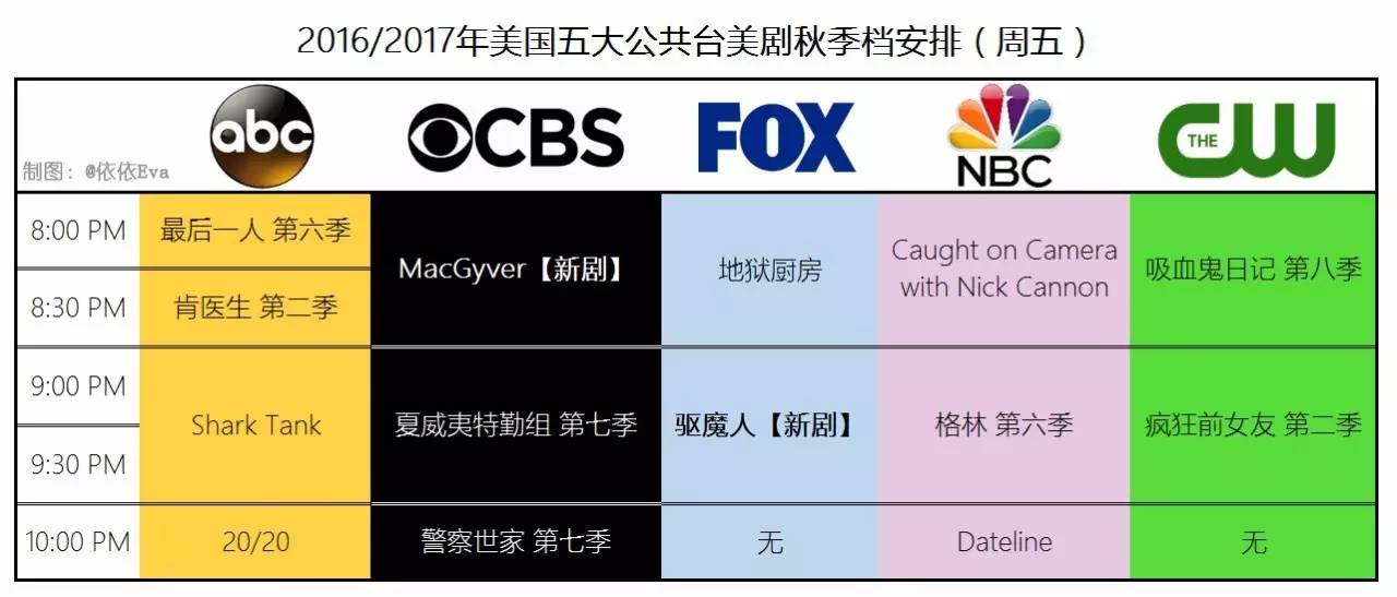 此外,本周美国五大公共台宣布了今秋美剧的档期安排: