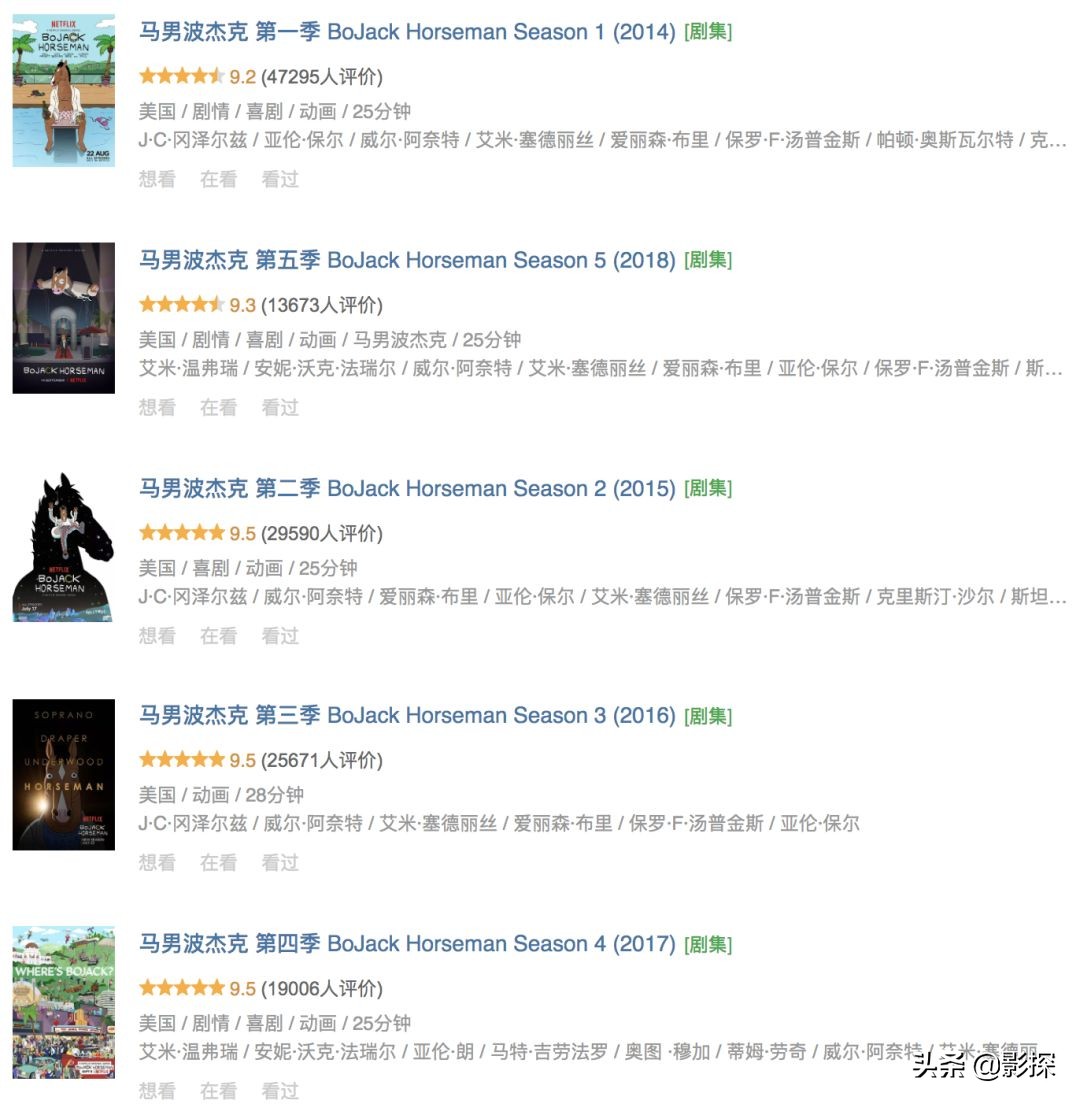 前五季在豆瓣的评分,都是9分+。