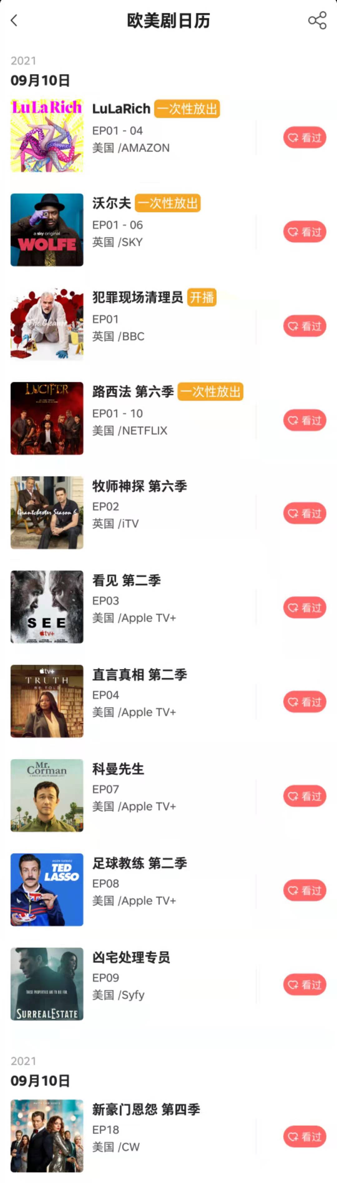 记艺app - 9月10日 欧美剧日历