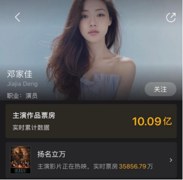 最近,演员邓家佳在电影《扬名立万》备受关注,收获了一波好评。而她个人主演的票房已经超过了10亿,不少网友都感慨邓家佳的优秀演技终于再次受到了认可。