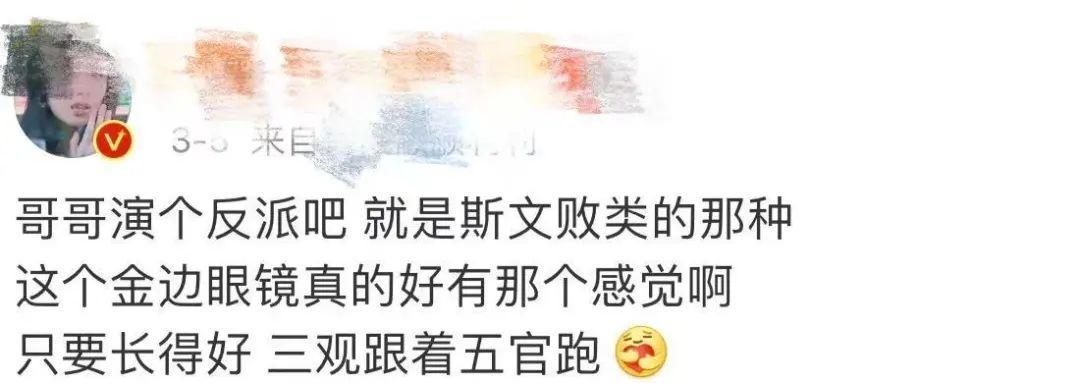 比如最近看剧“双标”名言:只要哥哥(反派)长得好,三观跟着五官跑。