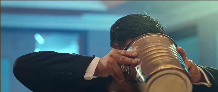 为了妹妹,老九不顾危险毅然赴约,直接当着众人的面做了一桶“四海为家”——白酒、红酒、啤酒、洋酒四种酒倒进一个桶里,一共有十几斤,老九端起桶直接一口气喝下。