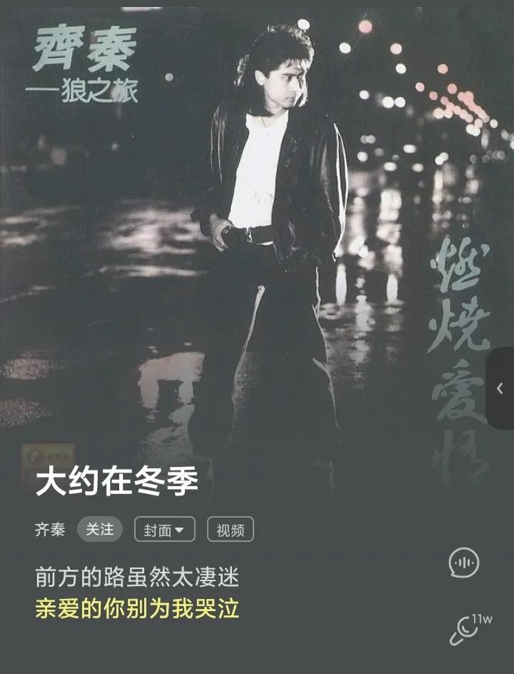 打开酷狗搜到了齐秦的《大约在冬季》,这首很适合在冬天收听的歌曲。