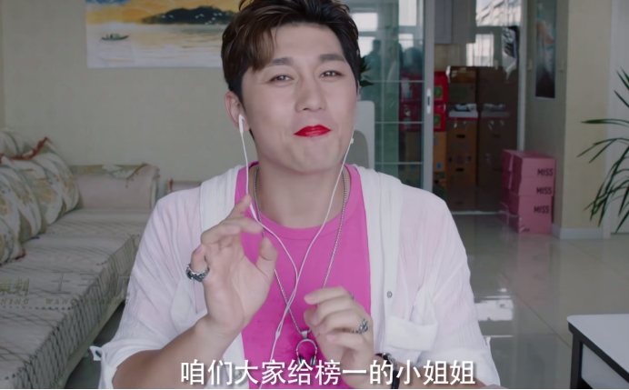 此时男扮女装的肖一博正在家里搞网络直播,观众带他在内一共3个人。