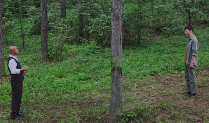 肖八一第一次与秦伯付在树林见面,两人聊了半天,火药味十足,没说。