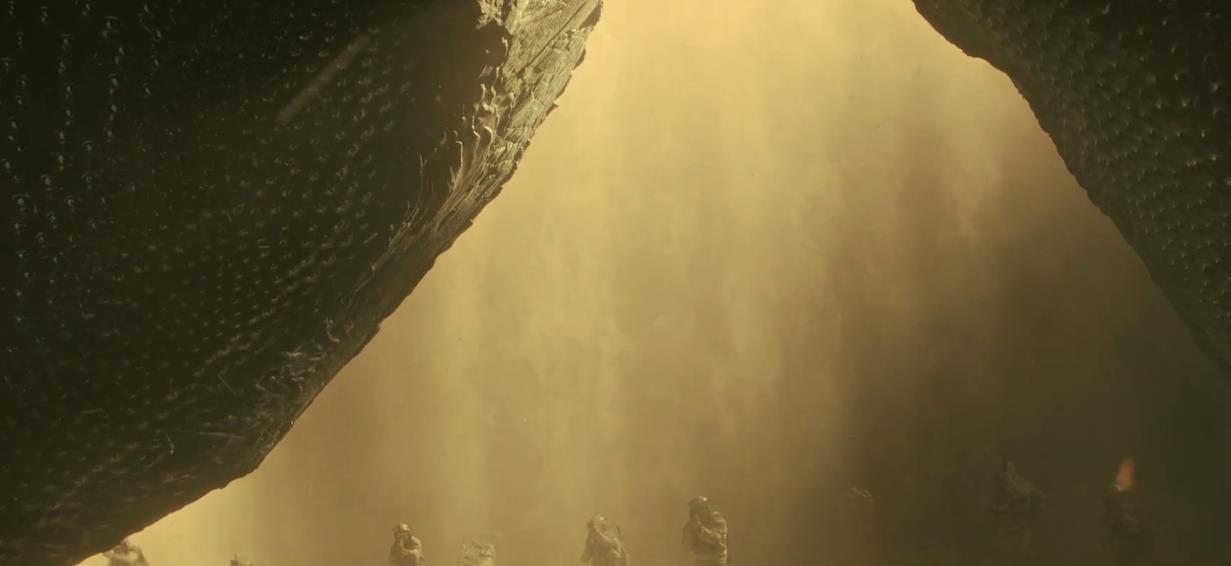 原来是遭遇了外星生物,几乎刀枪不入,还用沙尘暴作为伪装,音波攻击为武器。