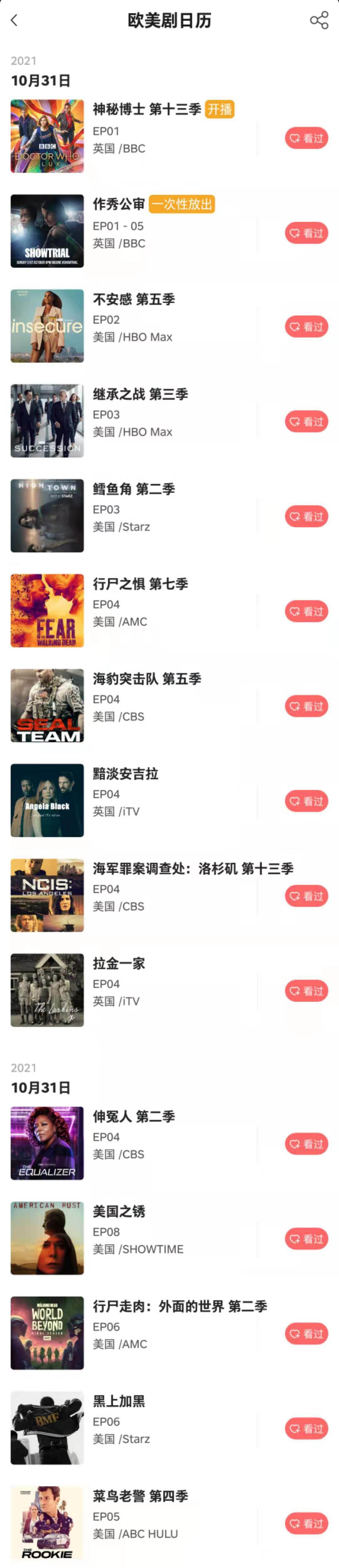 记艺app - 10月31日 欧美剧日历