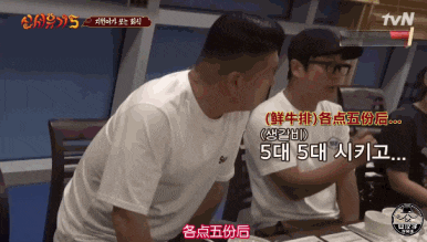 买单时,姜虎东不忘自己“特别不喜欢后辈掏钱”的形象,(假装)拦住买单的殷志源大喊: