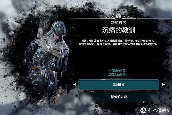 游戏亮点很多,比如带有朋克文化出色的画面,极端严酷但逼真的气氛渲染,特别是屏幕上慢慢的冻结特效都很让人震撼,游戏过场不是cg却精美的完全可以做壁纸,和我的战争一样各种突发事件依然需要你在生存和良知之间选择。