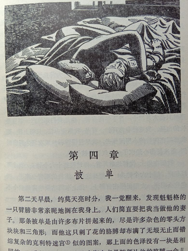 美国艺术家肯特(1882-1971)为本书创作插图,大部分章节都配有头饰,采用了黑白对比强烈的钢笔素描创作方式,为本书平添了丰富的想象力。
