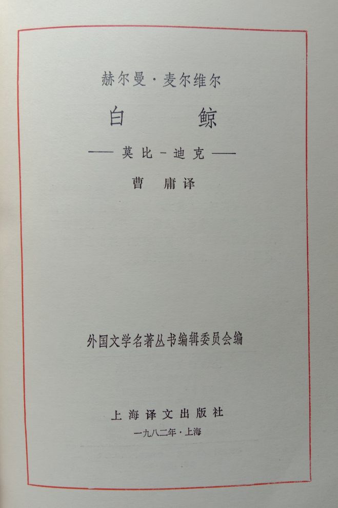 我收藏的网格本《白鲸》,品相完美,和新书差不多。洋洋洒洒,近六十万字,全书808页,由上海译文出版社出版,1982年9月1版1印,印数近三万册,定价2.70元。实际上这个译本在1957年由上海新文艺出版社出版过,但那个版本很难找到了。