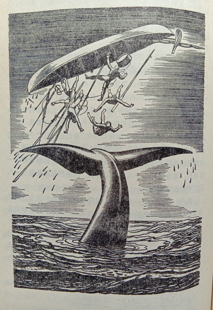 小说英文书名“moby dick or,the whale”直译就是“莫比·迪克 或鲸鱼”,其中莫比·迪克是一头凶猛又狡诈的鲸鱼的名字,捕鲸者遇到它不是腿断胳膊残,就是船破人亡,它就是捕鲸者的恶魔。书名《白鲸》是意译,读完全书,感觉这个书名也是神来之笔!