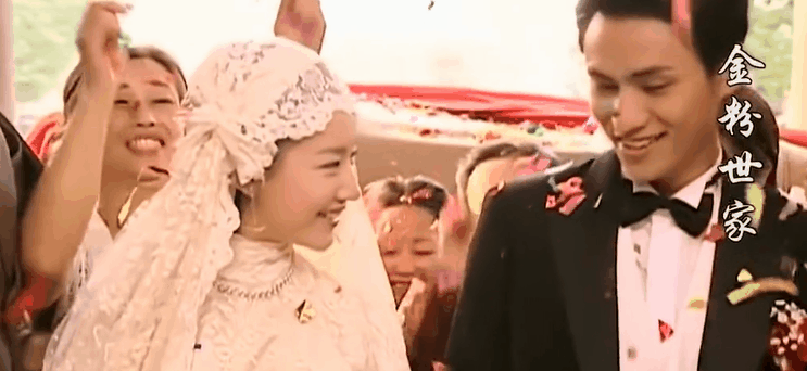 新娘新郎牵手走入大门,两人是笑着的,配的却是哀乐,暗示一入豪门深似海。