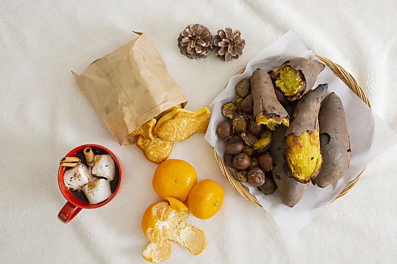 烤得滋滋冒油的红薯,也是秋日限定的温暖和甜蜜。刚出炉的红薯总是太烫,两只手里掂来倒去,反而添了一番乐趣。品尝的时候,一定不要顾惜自己的吃相哦,大胆地去咬一块烤到焦黄黏着糖浆甚至有点皱巴的皮吧!向你保证,只需一口,甜蜜无穷。