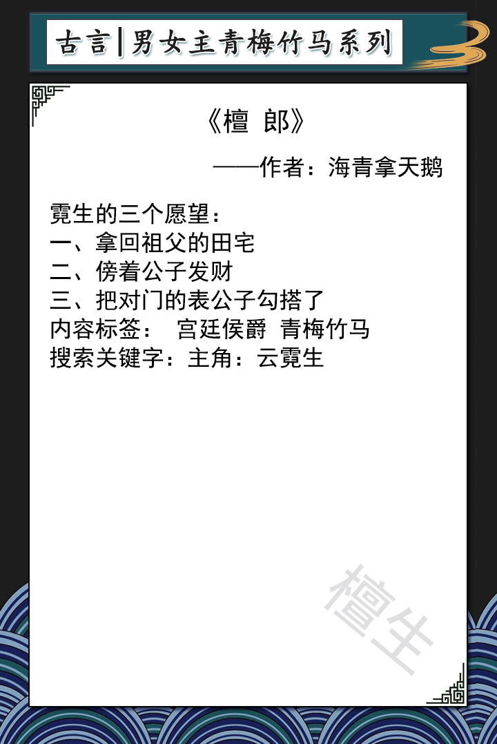 “男女主青梅竹马系列”古代言情小说推荐,献给喜欢阅读的书友们!