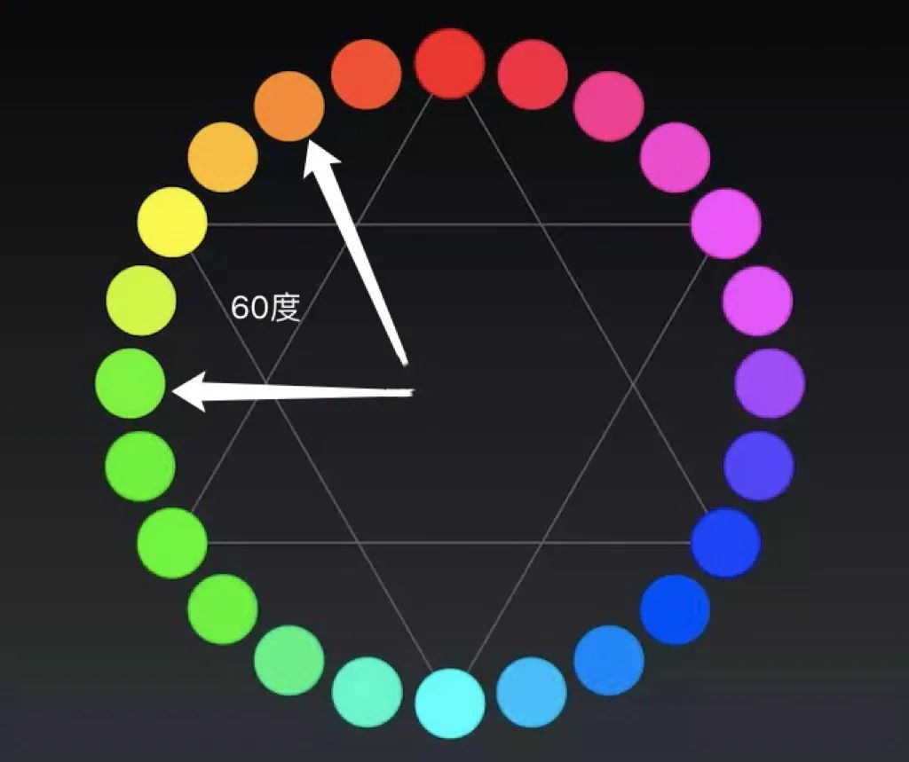 一般在色相环中,60°夹角范围之内的颜色都算是邻近色的范围,比如黄色、棕色和橘色。