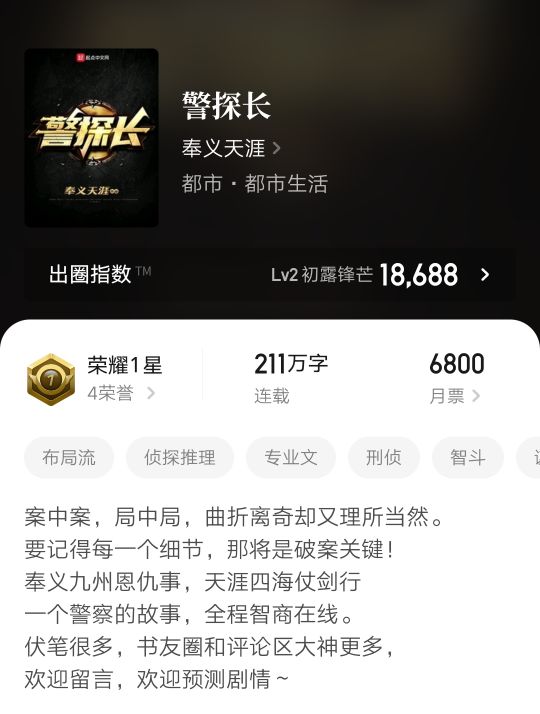 偏写实类型都市警察文,作者警大毕业,本身从事警察工作。