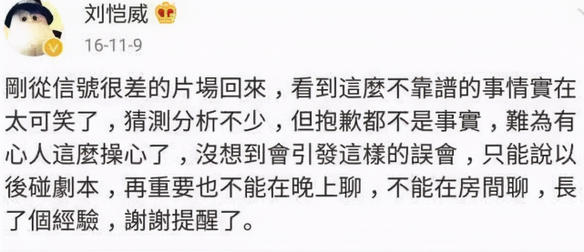 ???对此事,刘恺威是通过工作人员传达出两人只是在对剧本,还解释说剧组信号不好,但是卓伟团队紧接着又放出一条两人关灯共度三个小时的视频,狠狠打了刘恺威和王鸥的脸。