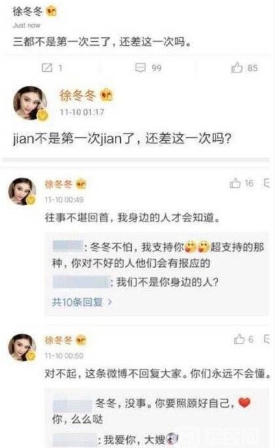 ??网友顺着时间线扒出徐冬冬交往过的前任蒲巴甲与王鸥在搭戏时有染,王鸥还在个人社交平台称呼蒲巴甲为“老公”,不管是不是开玩笑,这样称呼一个有女朋友的异性,着实让人接受无能。