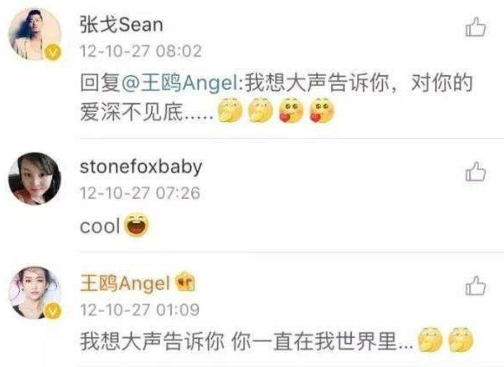因为彼时的王鸥和张戈都不火,两人经常在个人社交平台高调秀恩爱,网友翻出当时王鸥与张戈互动的证据,让王鸥无从抵赖,只好承认与张戈交往过。