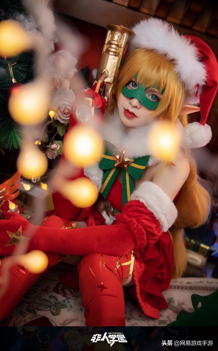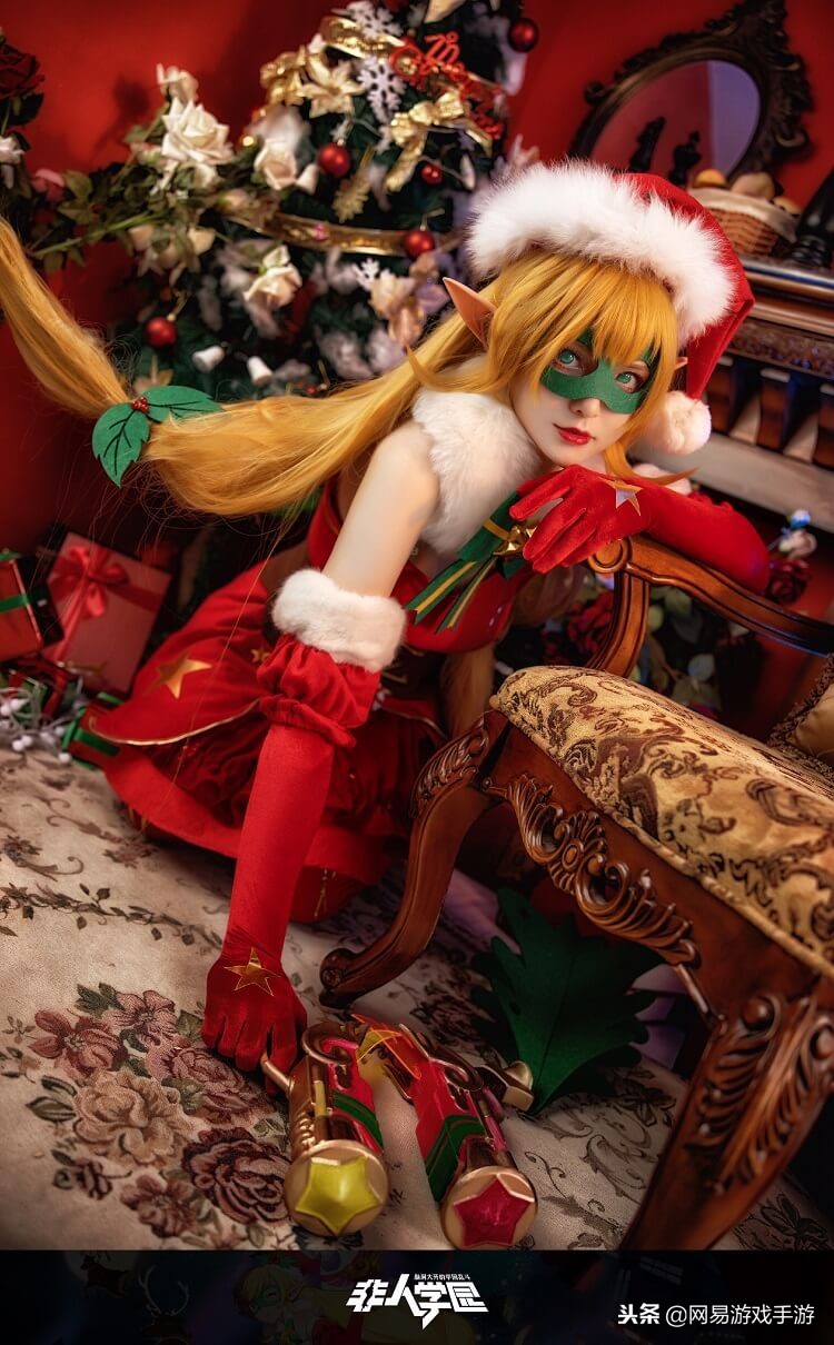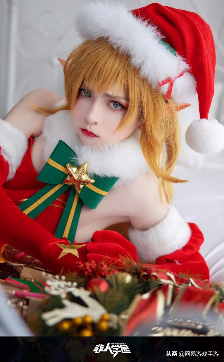 除了服装上完美复刻了白灵史诗级圣诞时装扮相,coser你的糖分在形象、身材上,更是神还原白灵小姐姐。如秋波流转的大眼睛,傲娇的红唇,妖娆的大波浪金发,让人一见就生出怜爱之心。