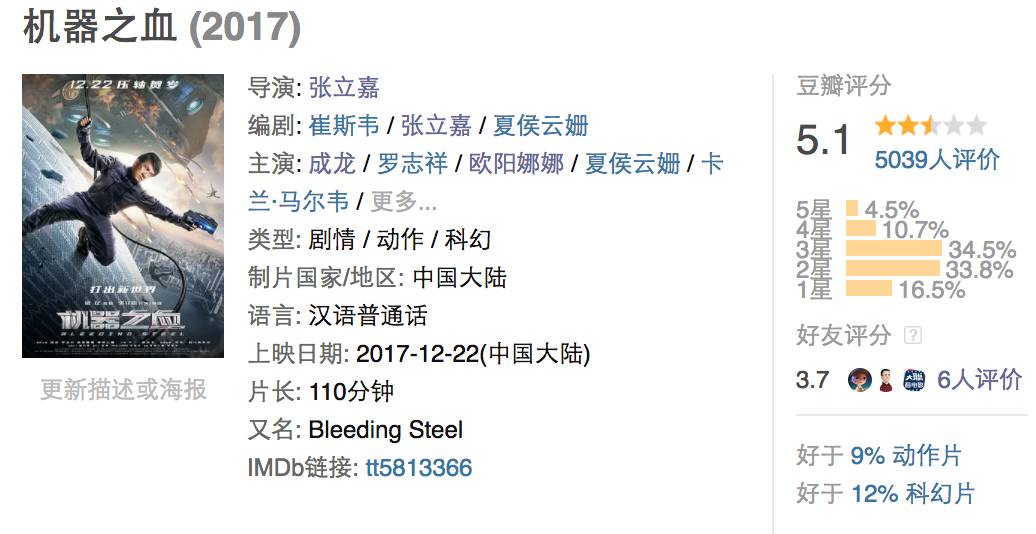 如果你只想看一部不需要动脑的成龙爆米花商业片,那这部《机器之血》,多半不会失望。