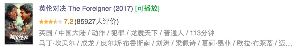 从目前来看,成龙扮老的《英伦对决》肯定会是口碑最好的一部。豆瓣7.2分