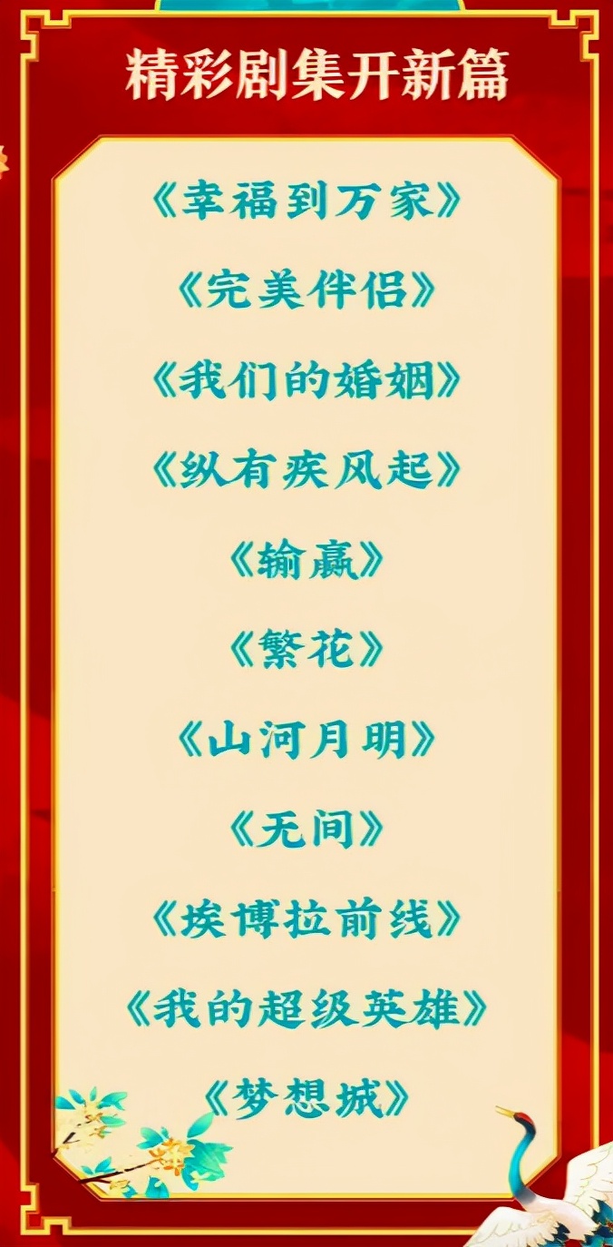 电视荧屏更加青睐的都市情感剧集也不乏精品,由郑晓龙、姚远联合执导,赵冬苓编剧,赵丽颖主演的《幸福到万家》,付宁执导的《胡同》等都已积攒了很多期待值。白百何横跨两部剧作《我们的婚姻》和《我的超级英雄》,一部是和佟大为合作,由都市剧导演黄金组合沈严、刘海波执导;一部则出自正午阳光“良心”团队,与黄轩的搭档也值得期待。久未露面的演员高圆圆明年也会重回荧屏,和张鲁一组成《完美伴侣》。由靳东和宋佳共同主演的现实主义情感大剧《纵有疾风起》进入北京卫视片单,“商战+情感”的新模式也值得期待。
