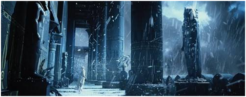 从这点上看神也不是庇佑所有人的,神只保佑信仰他的、听他话的人。而埃及神在这里就没有出现,只有神庙里或者壁画里出现的埃及神祗的形象表明,埃及是有这些神的。此时耶稣神化身为一个小男孩,深刻又严肃地和摩西对话。耶稣神和埃及神的对比在这里就很鲜明了—一个是被刻画在壁画上供人参拜、朝奉的没有实体的形象,一个是无所不在无所不能的会在你最需要的时候以男孩的形象出现并帮助你渡过难关的上帝。在这部电影中可以说耶稣神的形象是远超埃及神的了。