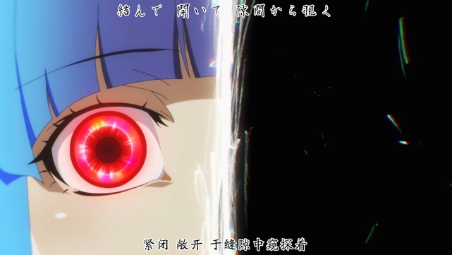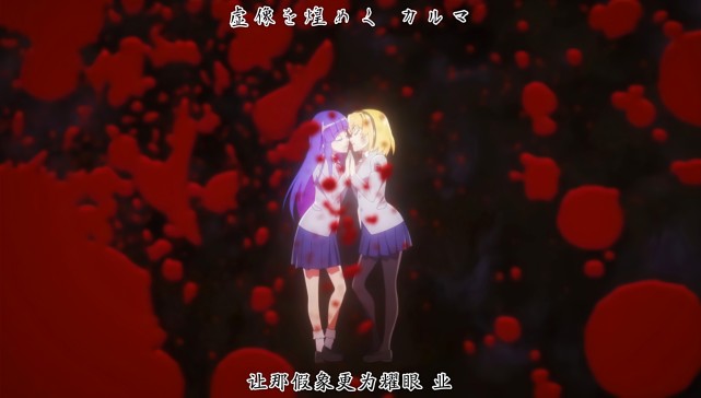 不知为何,总感觉《寒蝉鸣泣之时·卒》的op要比《寒蝉鸣泣之时·业》的op要好,op的画面要更劲爆,所爆料出的内容也更加丰富,尺度也更大了,画面的切换帧数明显增多了,观感极佳。从歌曲本身来看,相当的好听,歌词和风格都完全符合剧情的发展,也融入了寒蝉的主题。(表面上梨花和沙都子和睦共处,实则两人必将争得你死我活,为了各自截然不同的梦想而努力)