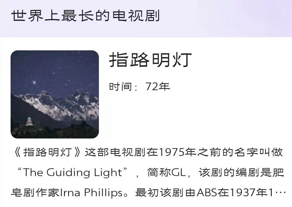 据了解,世界上最长的电视剧是美剧《指路明灯》,该剧在1937年首播,2009年才播出大结局,播了72年,共1万8千多集,应该没有多少人看完整部电视剧。