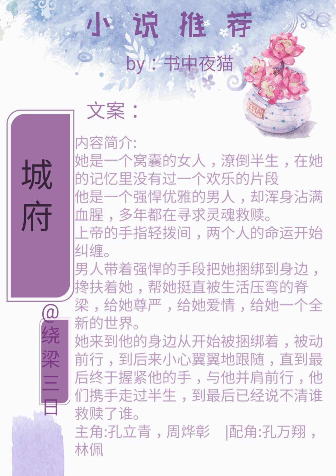 而《城府》里面的女主孔立青的身世其实并有点悲惨,7岁就父母离异,跟随着父亲和继母生活,大学毕业后父亲进监狱,就带着父亲和一个外遇风尘女子生的孩子孔万翔一起生活。其实夜猫觉得造成女主内心消沉、窝囊、没有自信的真正原因是男二贺志晨。至于为啥是男二,就要你们自己去看了,哈哈^_^