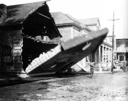 另一方面,影片的重要情节,也颇具基顿色彩,再次讲述了一个罗密欧与朱丽叶式世家仇怨的爱情故事。翻翻豆瓣,关于《船长二世》的一个常见描述就是“20年代的灾难大片”。巴斯特基顿擅长创造具有强烈环境冲突的桥段,在其中以自己灵巧的肢体动作和护花之心躲避危难、实现拯救。