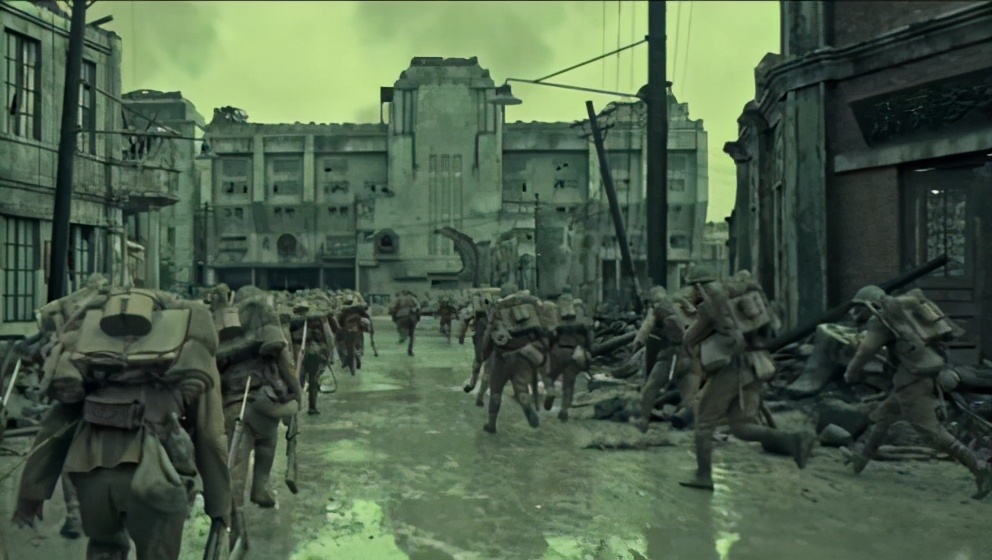 在电影《八佰》中有一个片段,受到四行仓库将士们不屈的战士精神感染,在租借地安全区的三个初中生,一腔热血从暗河偷渡到四行仓库,可他们还没来得及了解真正的战争是怎么一回事,就在突发的冲突中,被炮火吞噬。