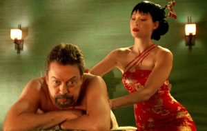 (刘玉玲在《霹雳娇娃》里的按摩师和性感教师扮相)