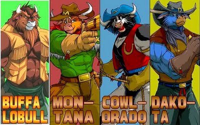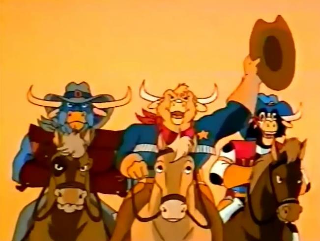 三头“牛”(黄牛、蓝牛和黑牛)牛仔在蒙美萨小镇惩恶扬善的故事,坏人是另一头蒙面红牛和俩跟班秃鹰、一个蓝不拉几的小矮子。另有两位可爱的牛小姐。