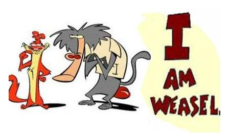 黄鼠狼威索脱离了《鸡与牛》,成为一部独立的动画。这部动画一般有两位主角:黄鼠狼我·是·威索(i.m.weasel)和狒狒我·乃·班布(i.r.baboon)。黄鼠狼威索是个很有天赋的哲学家,通常也是剧集中唯一的胜利者。 相比之下,狒狒班布就很笨,而且有很多语法错误(正如他把名字中的i.r.)。他很嫉妒威索。班布懂的东西很少,但是他被人发现有艺术鉴赏天赋。