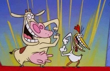 故事的主人公牛妹妹是一只拥有神奇力量的小奶牛,平时呆呆傻傻,但是在关键时刻就会变身成“超级牛”,通常她的变身都是为了拯救身为屌丝,但是有点自大和瞧不起妹妹的鸡哥哥。鸡与牛的父母设定成只露下半身的人类,通常都待在家,很单纯和相爱。故事大反派是来自地狱的“没穿裤子先生”(the red guy),他的主要任务就是搞破坏,以及调查“超级牛”的来历。