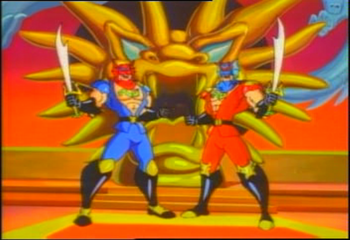 “为了正义,为了胜利,我们是双龙。”改编自知名游戏《双截龙》。约翰为了找回被影子魔王抓走的小儿子吉米,把大儿子比例托付给老龙王。吉米和比利双龙联手打败了影子魔王。