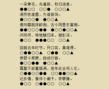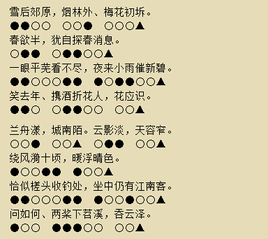 “▲”标仄韵,例如:落、索、泊、削.....这首词押入声韵,例如削,今天虽然是平声(一声),但是在古韵中是入声,属于仄声。