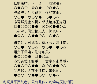 填词必须懂格律,知“平(○)仄(●)”,没有不依照词谱填写的词 。词又被称为长短句, 但是很多也是长短句的诗却不能称之为词,就是因为这些诗不符合词谱的格律要求。简单来说,词可以看成是遵守固定格律的古体诗。