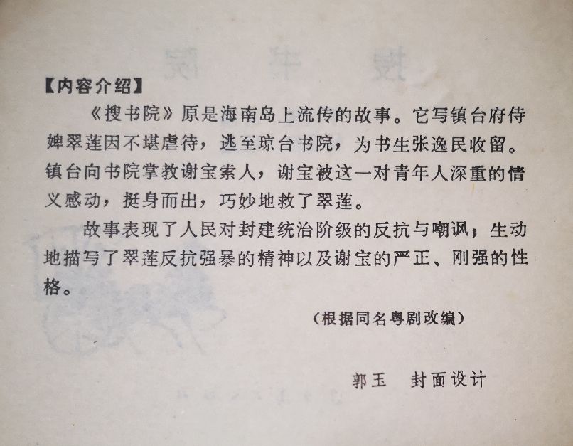搜书院是由马师曾,红线女主演的一部剧情片。辽宁美术出版1982年7月出版,杨宝恒绘画。 " " " " " " " " " " " " " ..