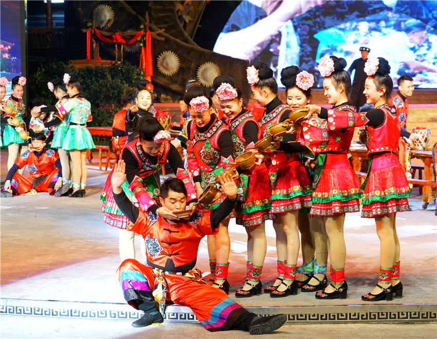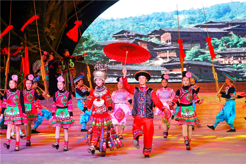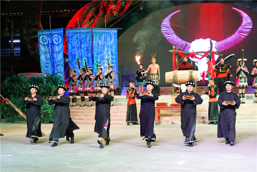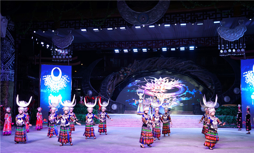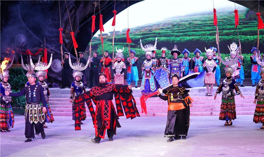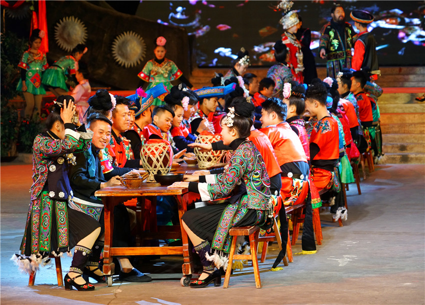 第三场《西江风情》,用歌舞的形式表达了苗族人的民俗风情,长桌宴,高山流水都是来西江才能感受到的特有风情。