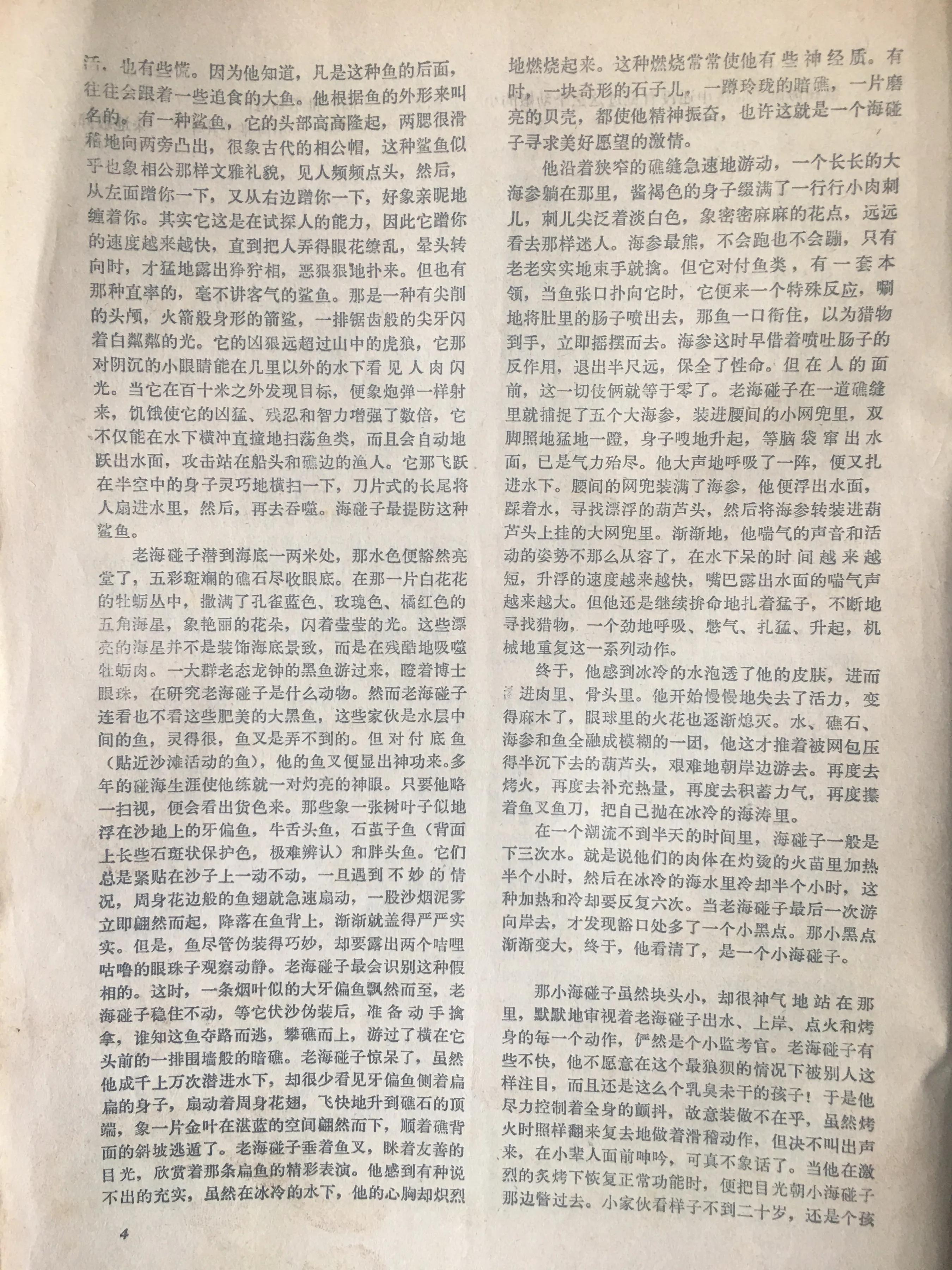 写海的小说,应该挺迷人的吧!黎汝青的《海岛女民兵》和浩然的《西沙儿女》,还有颇具震撼力的《白鲸》和《老人与海》!