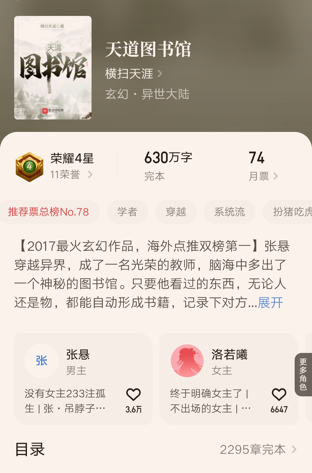 此前张悬已经在2019年9月落幕,是四本小说里最先完结的。这本小说让横扫天涯从一个普通的五级作者直接跨越到白金大神,可以说是极具传奇。